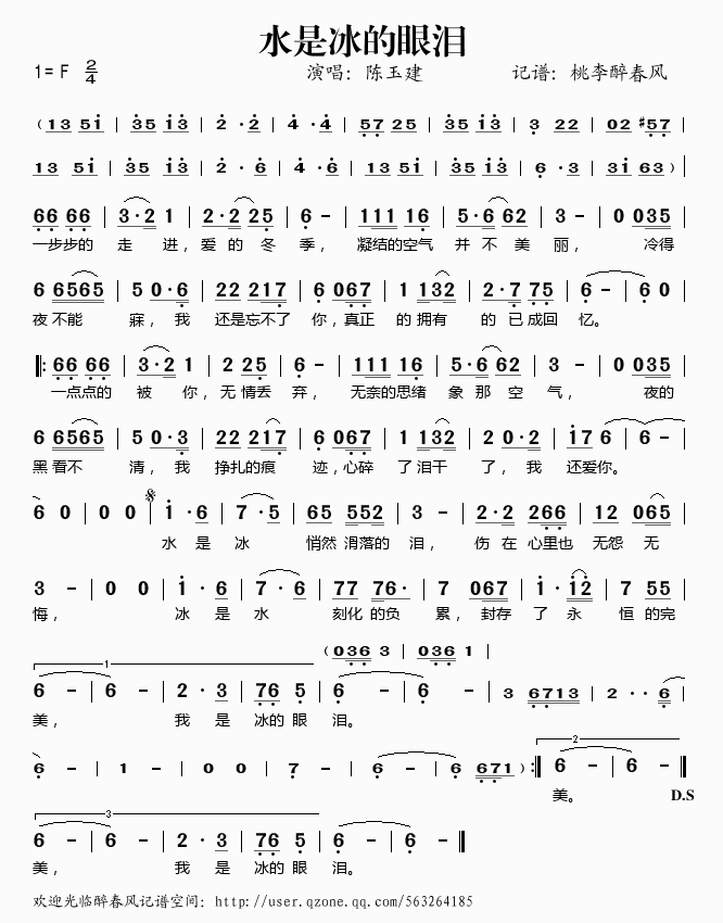 >> 水是冰的眼泪——陈玉建(简谱)