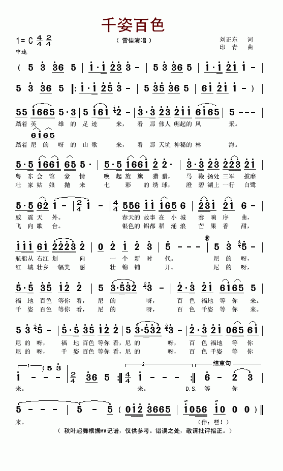 雷佳 -《千姿百色》作词:刘正东 作曲:印青 演唱:雷佳