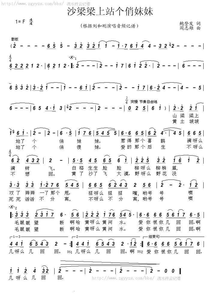 >> 沙梁梁上站个俏妹妹-刘和刚(简谱)