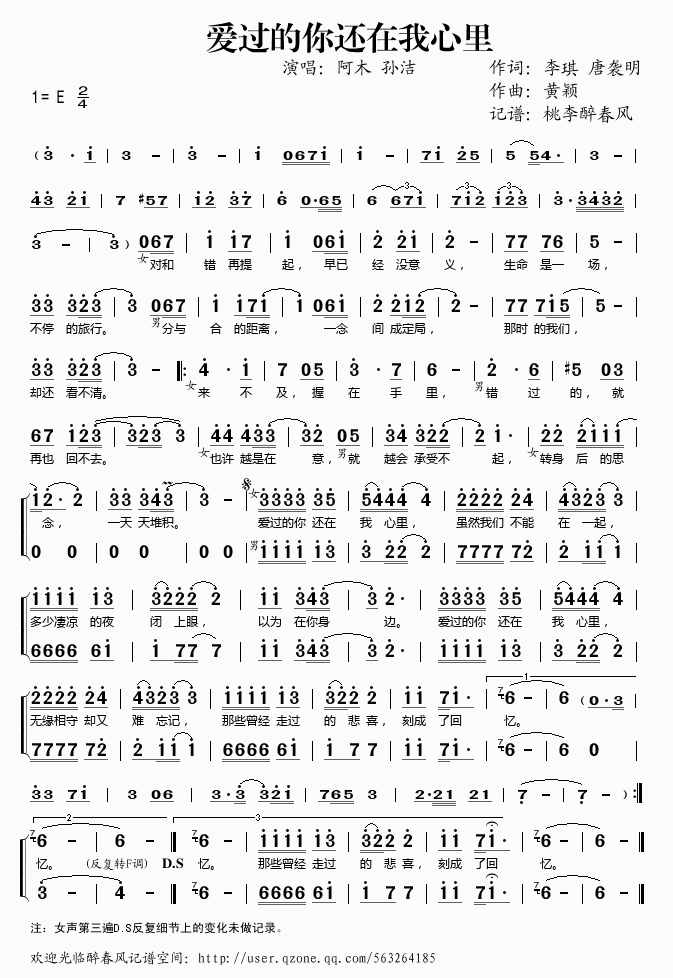>> 爱过的你还在心里——阿木 孙洁(简谱)