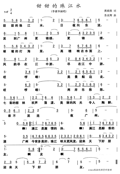 甜甜的珠江水-李素华(简谱)
