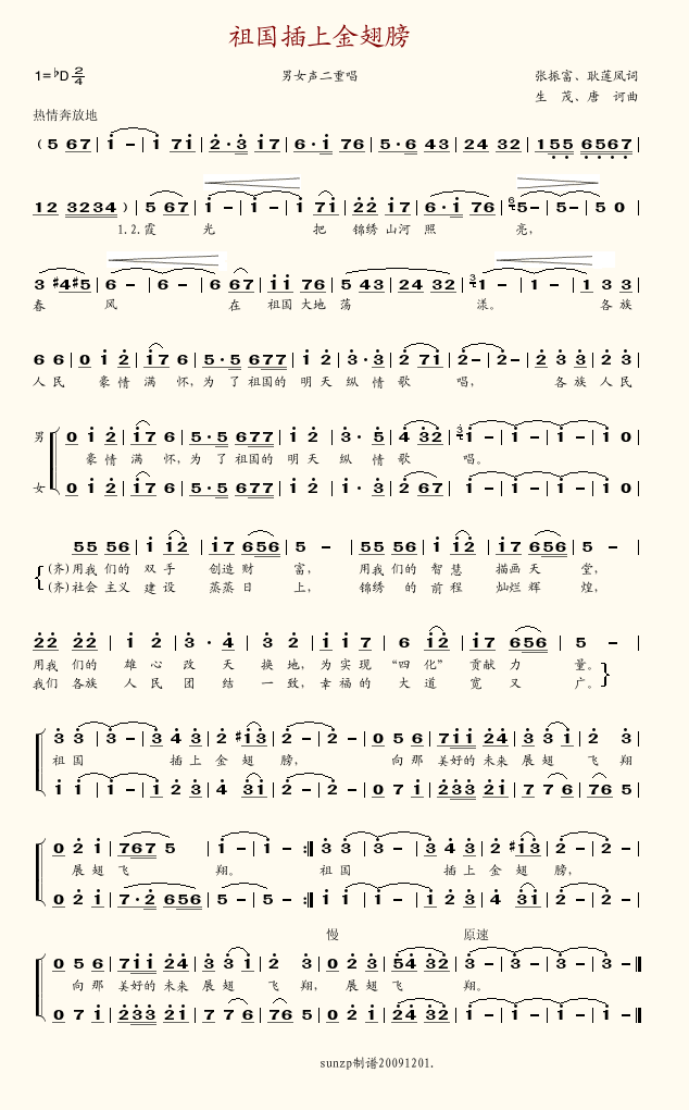 >> 祖国插上金翅膀-耿莲凤 张振富(简谱)