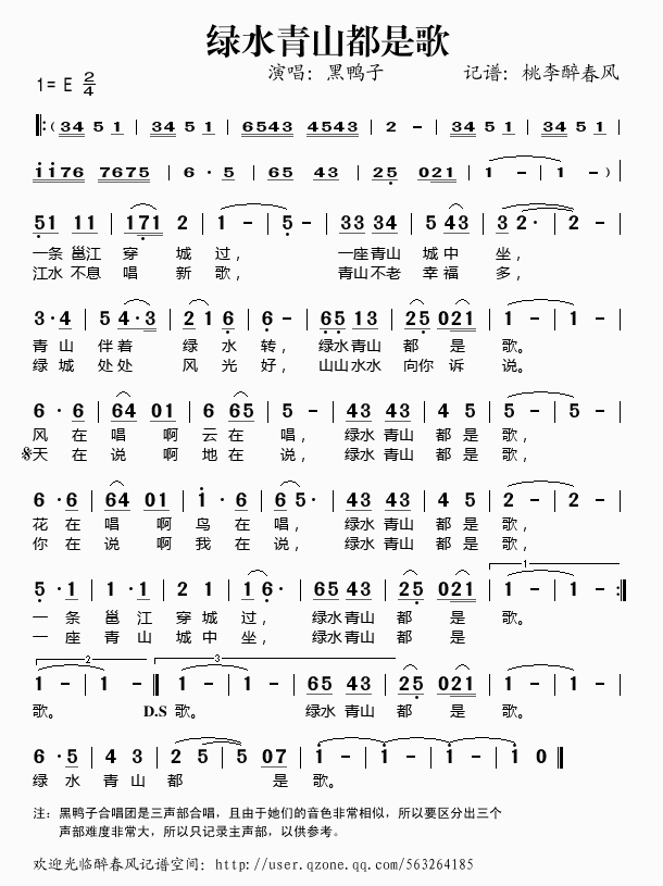 >> 绿水青山都是歌——黑鸭子(简谱)