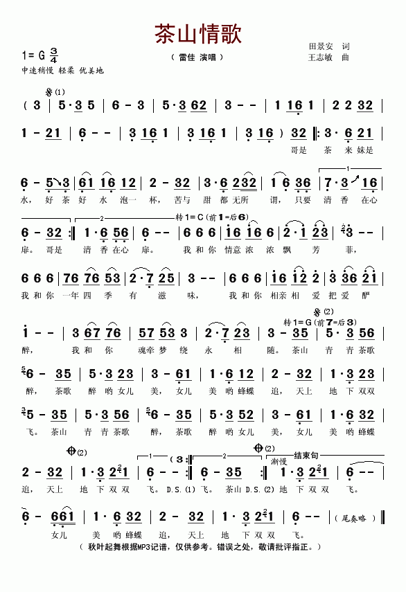 对歌-雷佳 阎维文(门巴族民歌简谱)