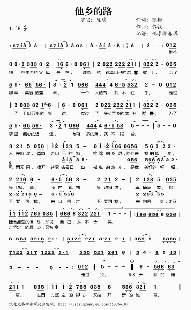>> 他乡的路——陈瑞(简谱)
