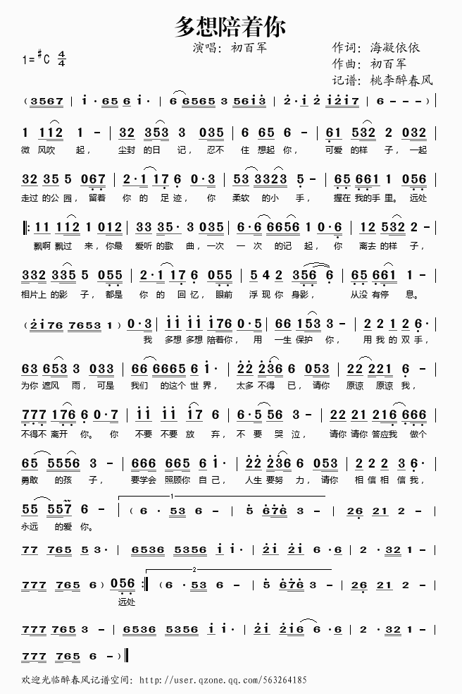 >> 多想陪着你——初百军(简谱)