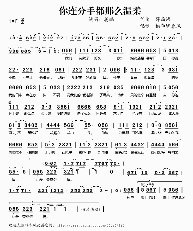 >> 你连分手都那么温柔——姜鹏(简谱)