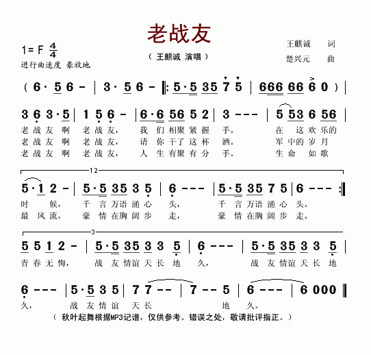 老战友-王麒诚(军旅歌谣_简谱)