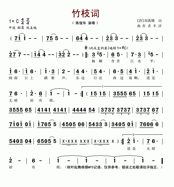 竹枝词-陈俊华(简谱)