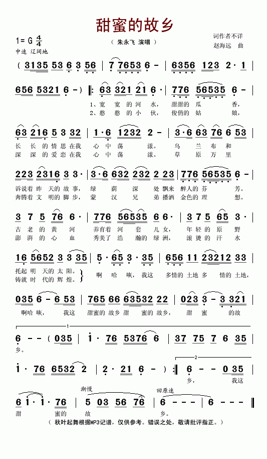 祖国草原祝福你-朱永飞 龙梅(简谱)