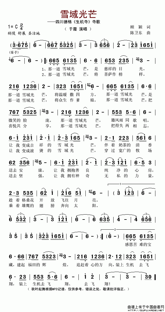 《雪域光芒——四川德格“生机寺”寺歌》