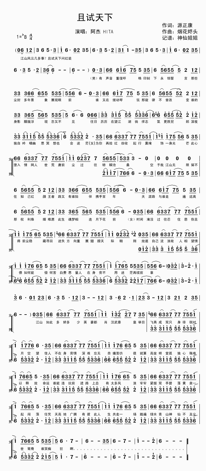 且试天下-阿杰 HITA(简谱 歌谱 歌曲简谱 合唱简谱 民歌简谱 影视简谱)