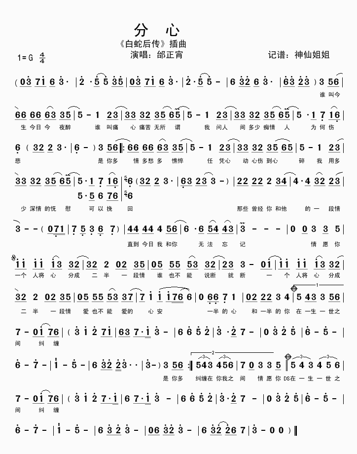 分心-邰正宵(简谱 歌谱 歌曲简谱 合唱简谱 民歌简谱 影视简谱)