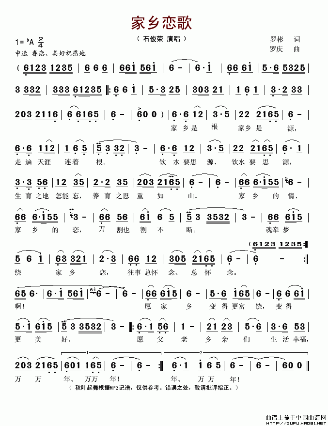家乡恋歌(罗彬词 罗庆曲 石俊荣演唱)