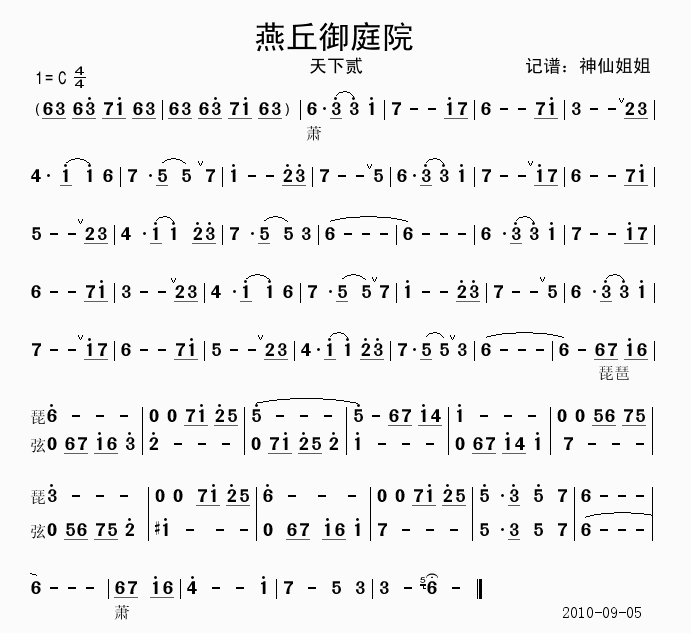 天下贰-燕丘御庭院(原声音乐简谱 影视音乐简谱 游戏音乐简谱)