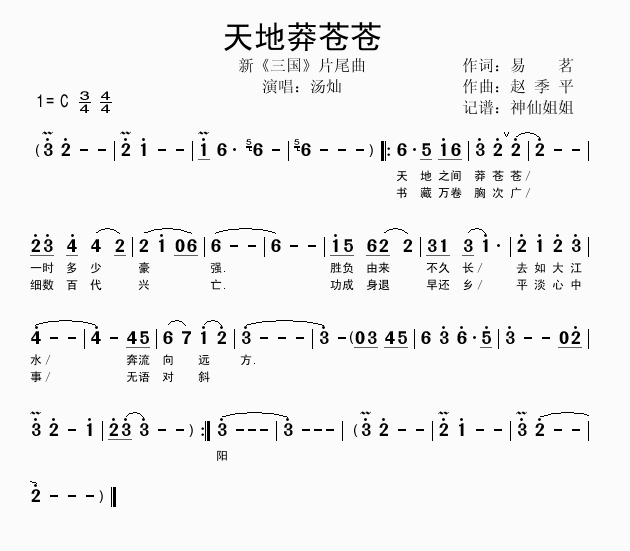 ===============汤灿-天地莽苍苍歌词下载=================