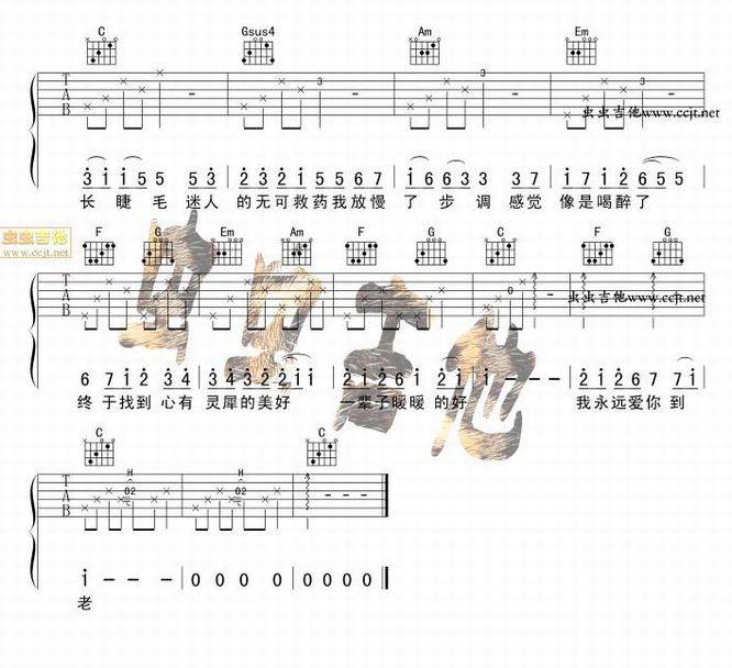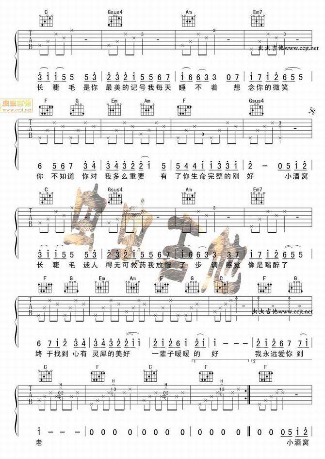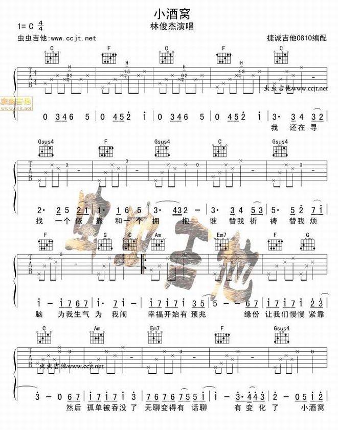 林俊杰 蔡卓妍-小酒窝(吉他谱 吉他六线谱 吉他歌谱 吉它谱 影视歌曲吉他谱)