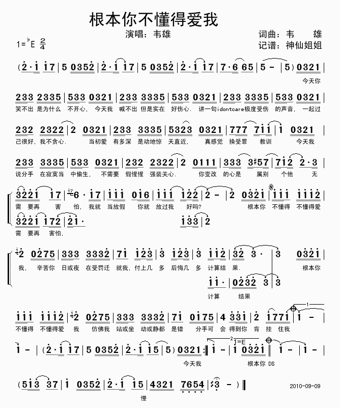 根本你不懂得爱我-韦雄(简谱 歌谱 歌曲简谱 合唱简谱 民歌简谱 影视歌曲简谱)