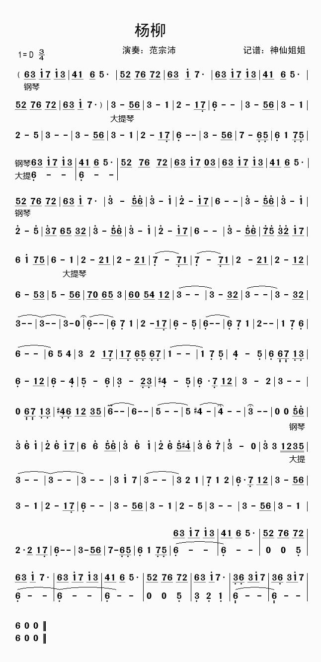 >> 杨柳-范宗沛(电视原声音乐简谱)
