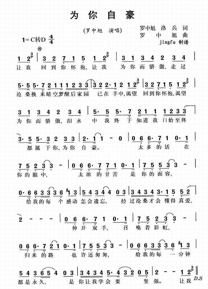 >> 为你自豪-罗中旭(简谱)