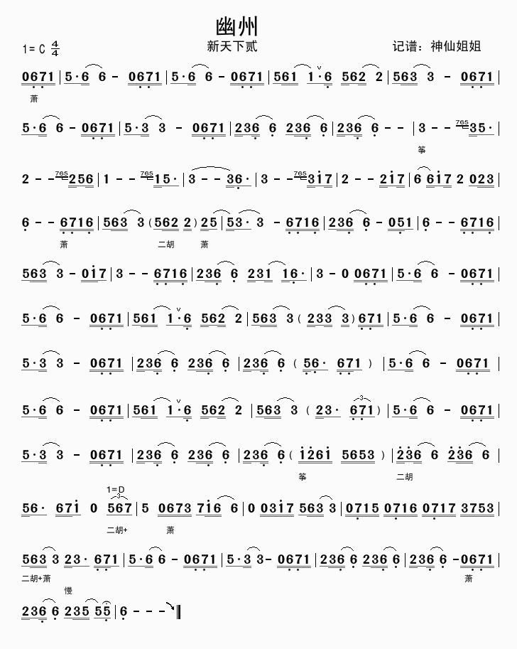 >> 幽州-天下贰(游戏原声音乐简谱)