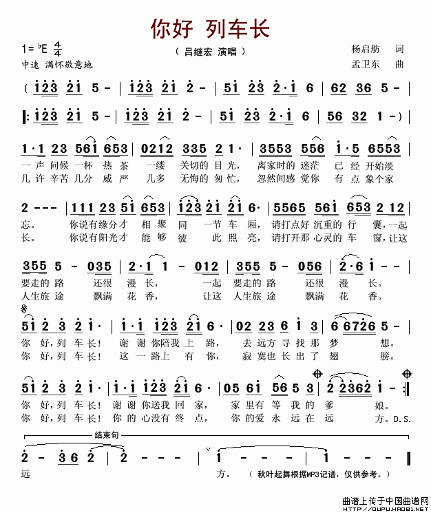 你好 列车长 你的心没有终点 你的爱永远在远方