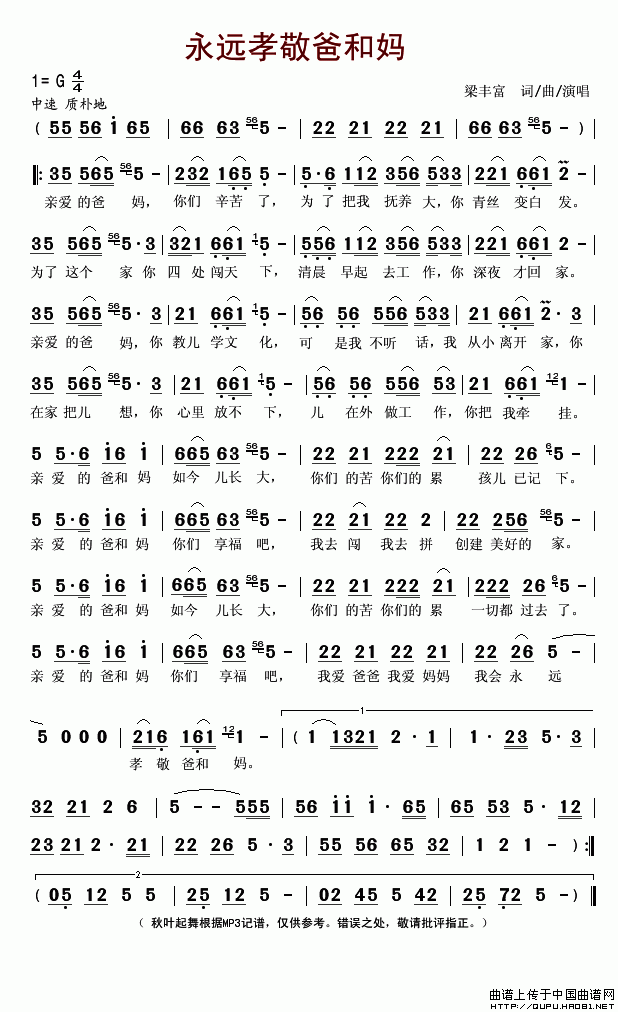 永远孝敬爸和妈-梁丰富 歌词: