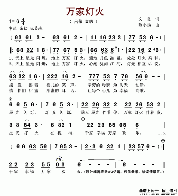 万家灯火-吕薇 歌词: