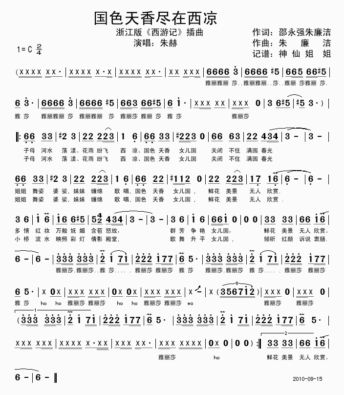 >> 国色天香尽在西凉-黑鸭子(浙版《西游记》插曲简谱)