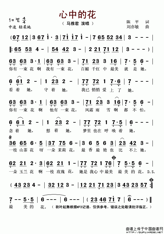 心中的花-马雅君 歌词: