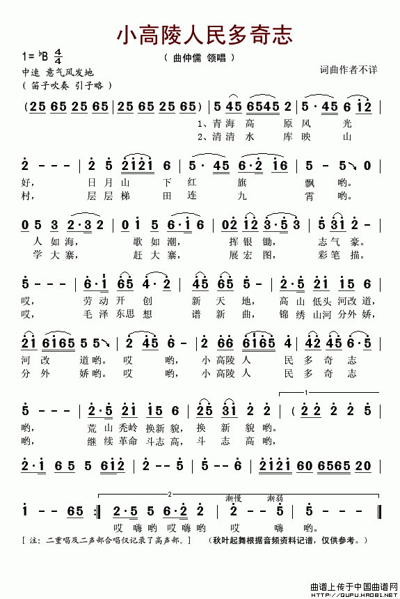 >> 小高陵人民多奇志-曲仲儒领唱(简谱)
