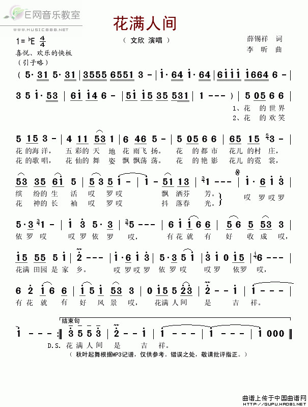 《花满人间》 作词:薛锡祥 作曲:李昕 演唱:文欣