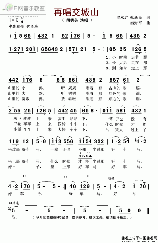 黄河那道弯-胡秀英 马啸(影视简谱)