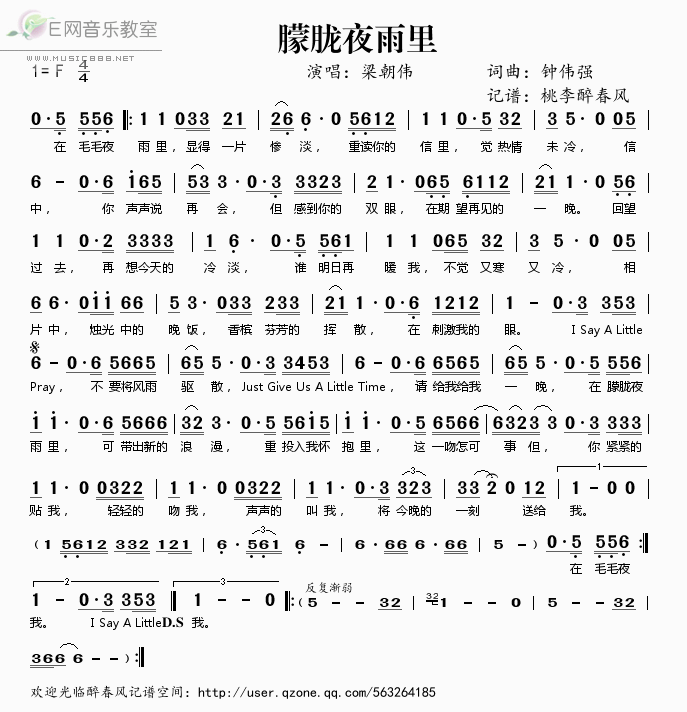 [00:00.00]梁朝伟 - 朦胧夜雨里