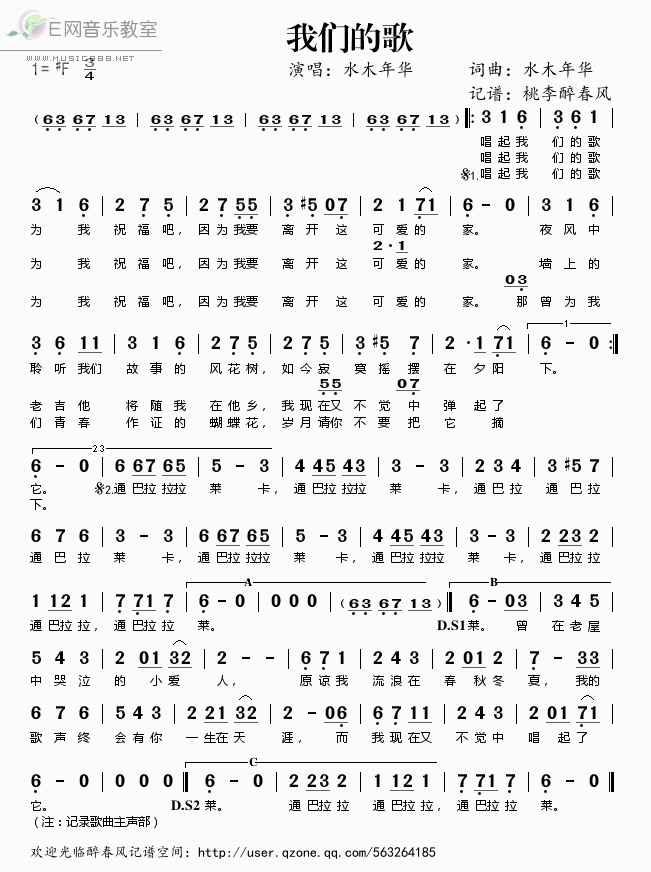 [00:34.01]唱起我们的歌为我祝福吧 因为我要离开这可爱的家