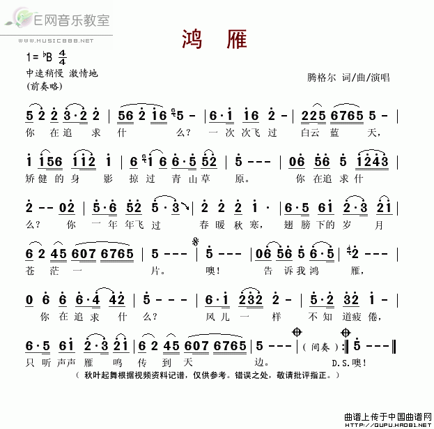 踏歌西行-腾格尔(《西游记》主题曲简谱)