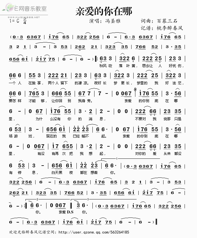 [00:01.00]冯圣雅 - 亲爱的你在哪