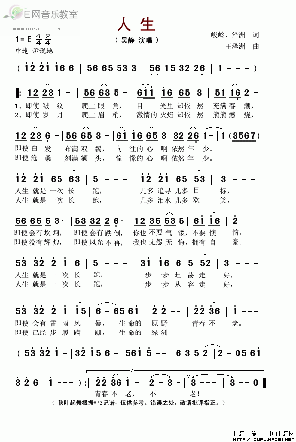 人生-吴静 歌词: