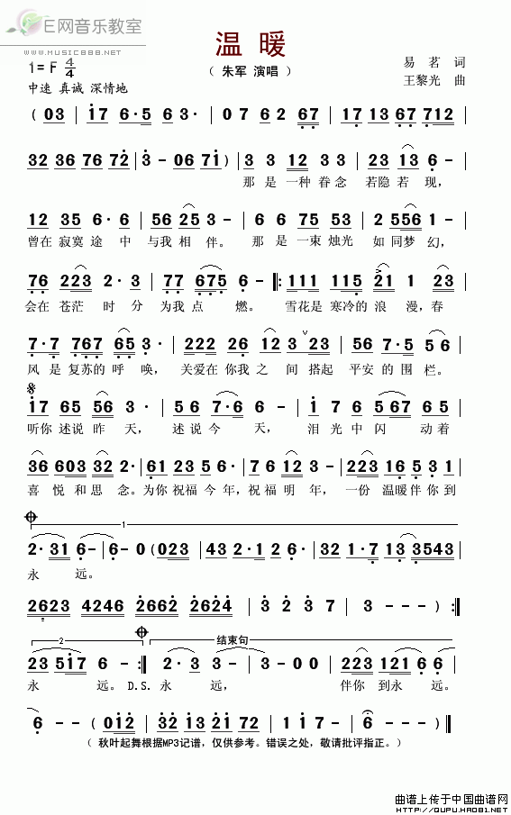 温暖-朱军 歌词:
