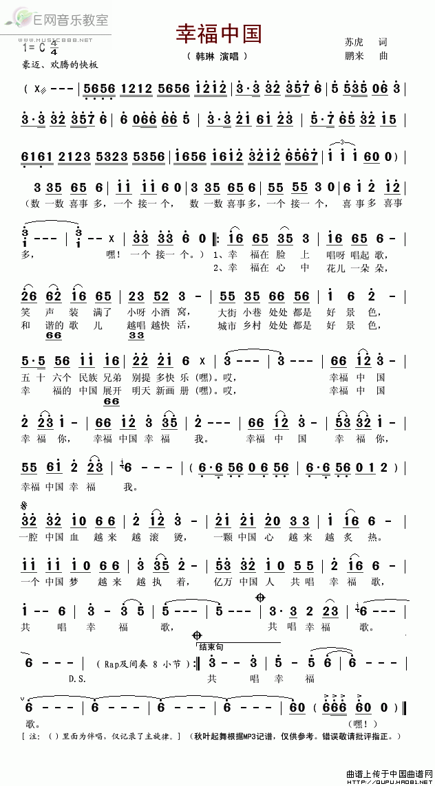 >> 幸福中国-韩琳(简谱)