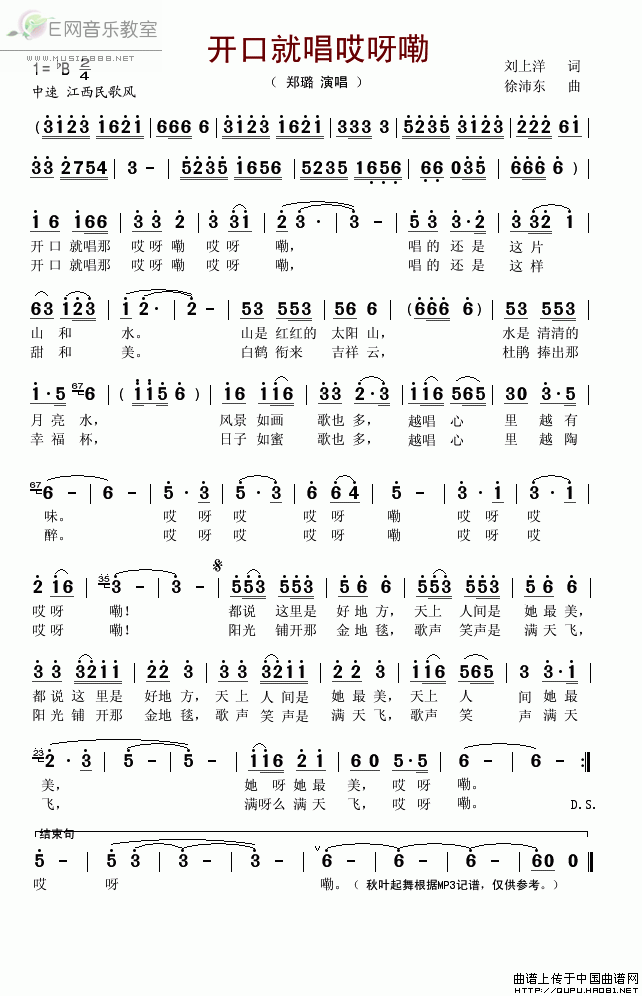>> 开口就唱哎呀嘞-郑璐(简谱)