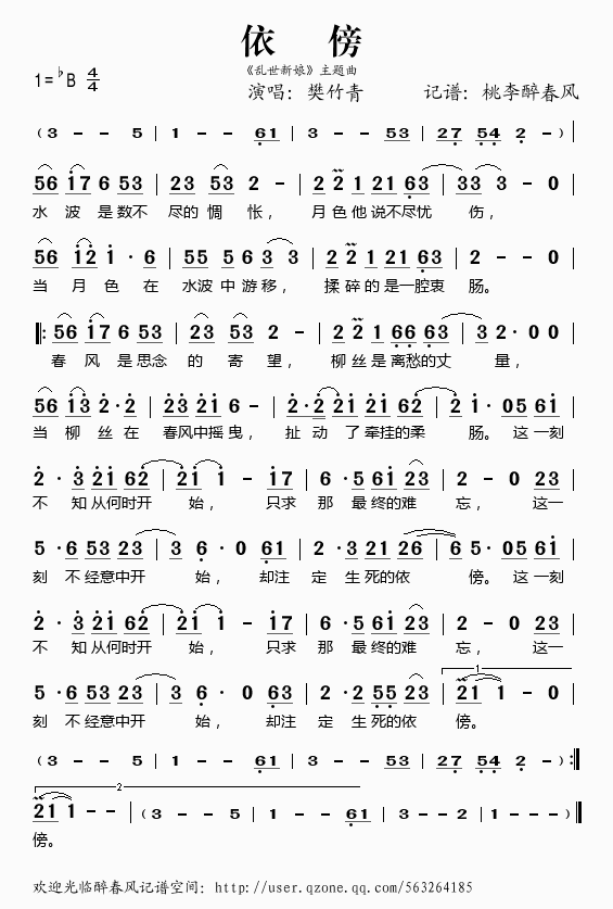 >> 依傍(《乱世新娘》主题曲)——樊竹青(简谱)
