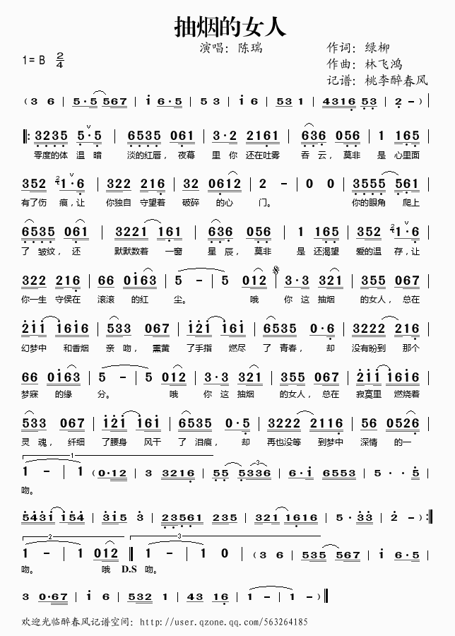 >> 抽烟的女人——陈瑞(简谱)