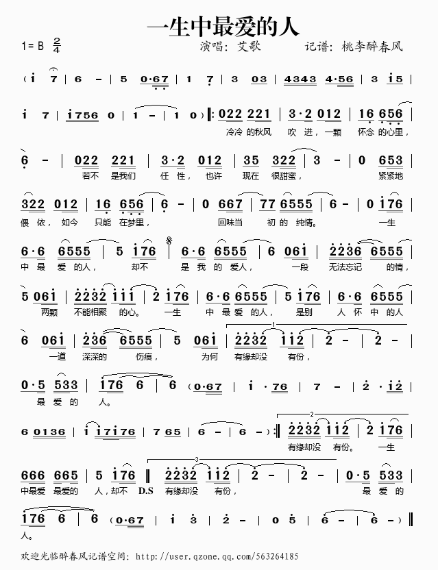 >> 一生中最爱的人——艾歌(简谱)