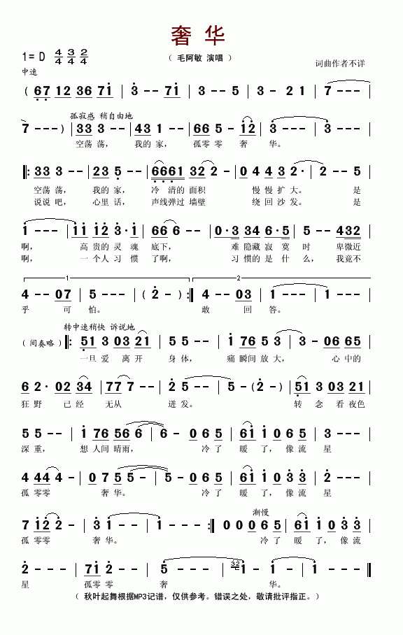 风雨同情-毛阿敏(《人间芙蓉色》插曲简谱)