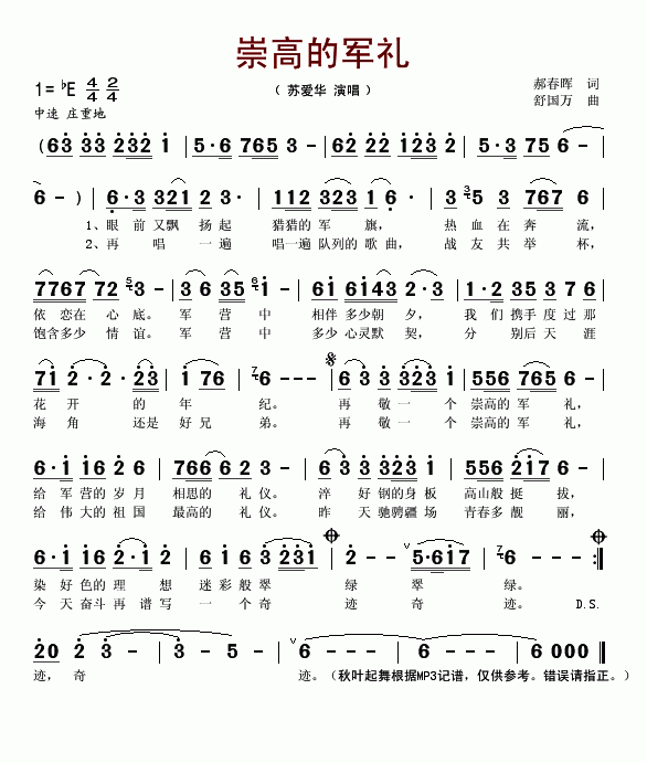 >> 崇高的军礼-苏爱华(简谱)