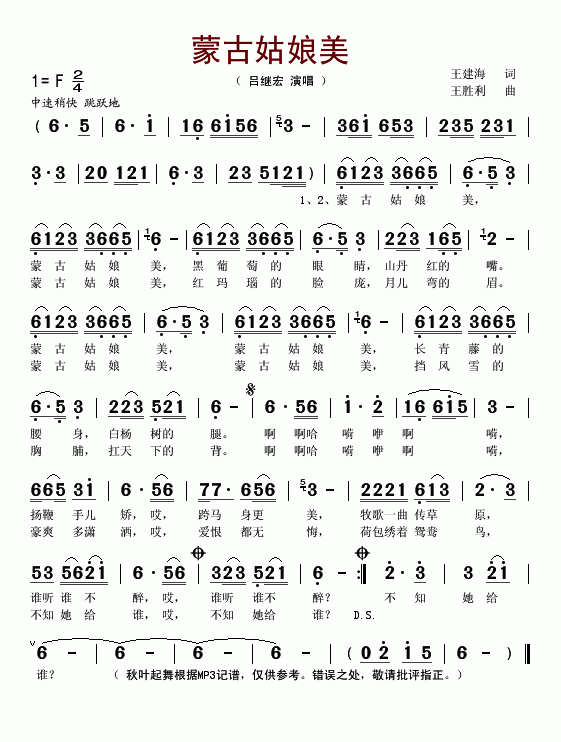 妈妈的歌谣-吕继宏(简谱+线谱)