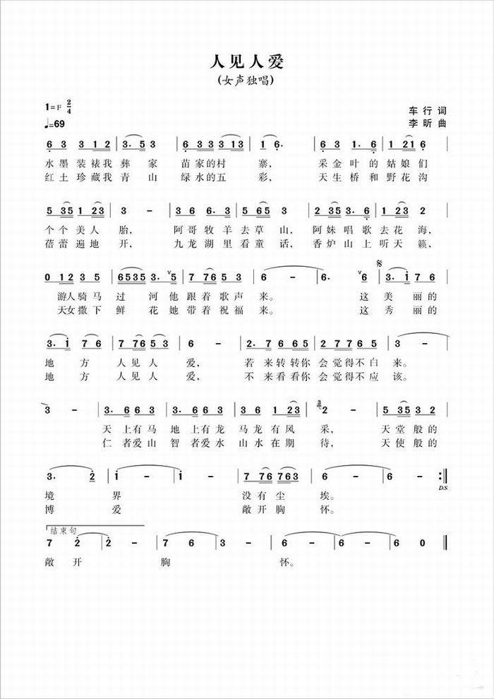 >> 人见人爱-宋祖英(简谱)