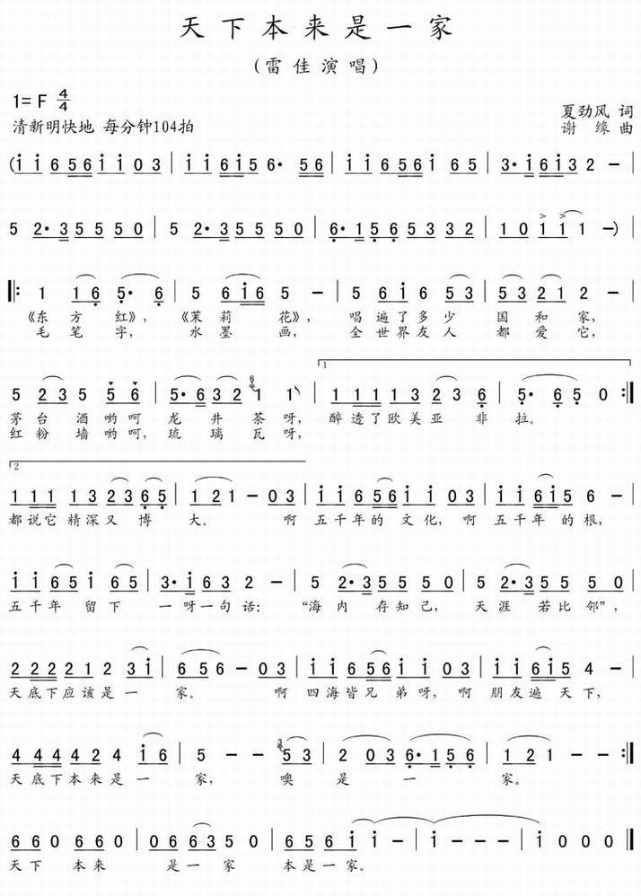 对歌-雷佳 阎维文(门巴族民歌简谱)