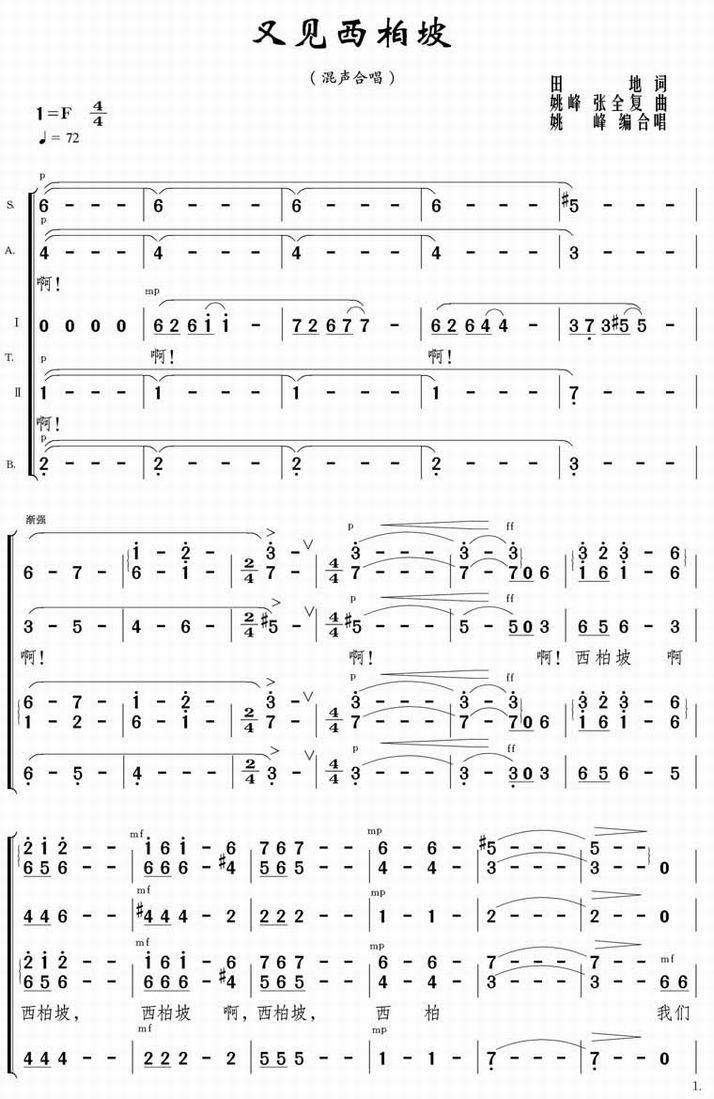 又见西柏坡-四部混声合唱(简谱) (1)